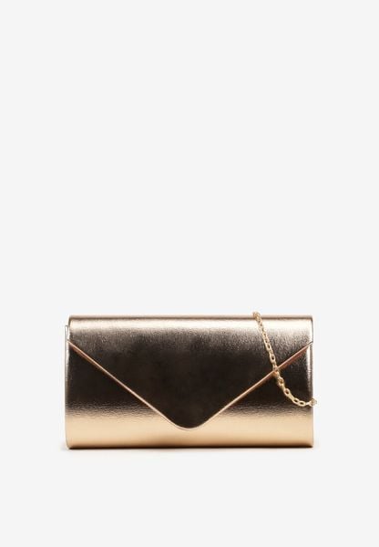 Szampańska Metaliczna Torebka Kopertówka z Odpinanym Łańcuszkiem Flonne