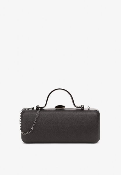 Czarna Torebka Kopertówka z Cyrkoniami Łańcuszkiem i Ozdobną Rączką Evalagia