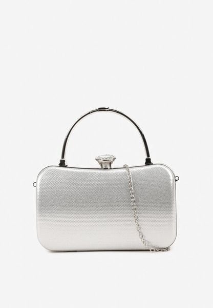 Srebrna Torebka Kopertówka z Metalowymi Rączkami i Łańcuszkiem na Zatrzask z Cyrkoniami Neliaira