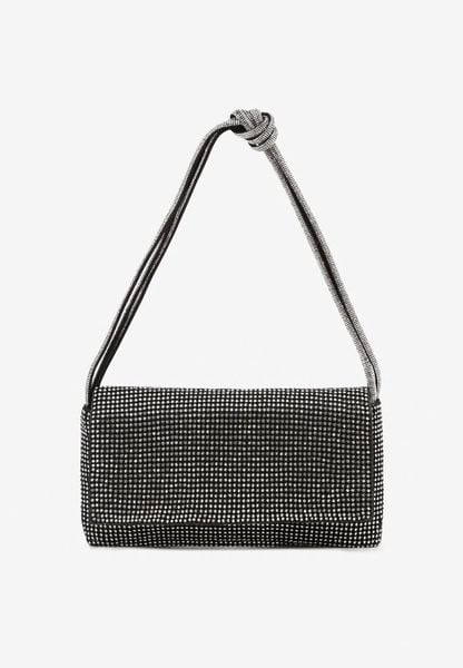 Czarno-Srebrna Mała Torebka Koktajlowa z Rączką i Łańcuszkiem na Magnes z Cyrkoniami Noragia