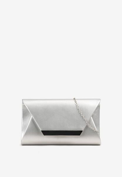 Srebrna Torebka Kopertówka Zdobiona Metalowym Detalem z Dodatkowym Łańcuszkiem Vorinna