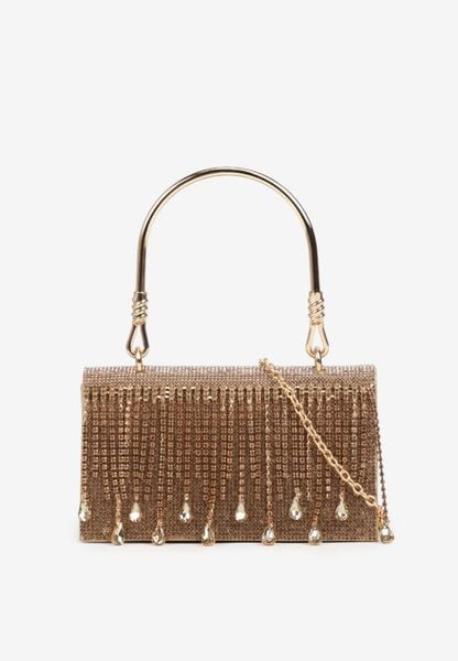 Złota Torebka Kopertówka z Cyrkoniami Łańcuszkiem i Ozdobną Rączką Evalagia