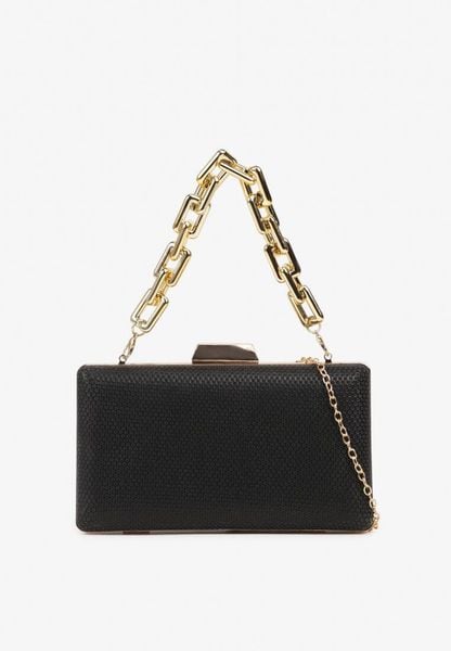 Czarna Torebka Kopertówka Vices w Kształcie Kokardy do Ręki i z Łańcuszkiem Isarri