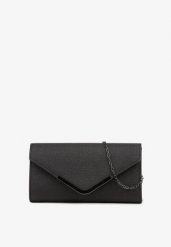 Czarna Wieczorowa Torebka Kopertówka Zdobiona Aplikacją i Łańcuszkiem Miliorra