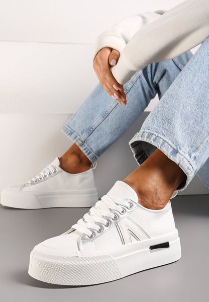 Białe Trampki na Grubej Podeszwie Sznurowane Peonema