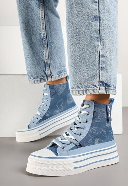 Niebieskie Trampki na Grubej Podeszwie w Serduszka za Kostkę Umirana