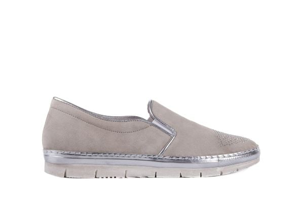 Trampki slip on marki Bayla idealnie sprawdzą się podczas letnich i wiosennych dni. Gumki umieszczone w cholewkach ułatwiają zakładanie obuwia. Białe, gumowe podeszwy mają właściwości antypoślizgowe.- zdobiony przód- wykonane z nubuku- wkładki oraz wyściółka wykonana ze skóry naturalnej- wsuwane- podeszwy z właściwościami antypoślizgowymi- niezwykle lekkie- gruby srebrny pasek przy podeszwie