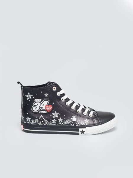 Trampki wysokie ze skóry ekologicznej z nadrukiem WOśP czarne TT174400 906