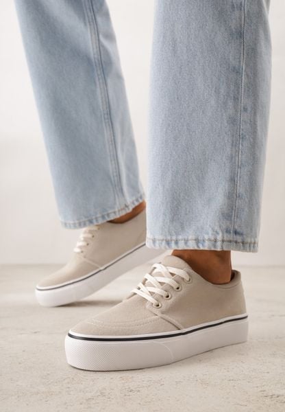 Beżowe Klasyczne Tenisówki z Ozdobnym Paskiem przy Podeszwie Ranora
