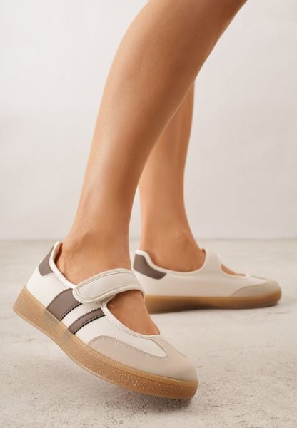Beżowe Tenisówki w Stylu Balerinek z Zapięciem na Rzep Talwan