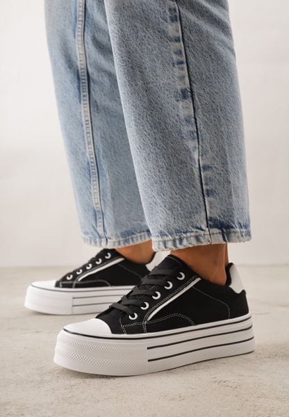 Czarne Klasyczne Trampki na Grubej Podeszwie Araenes