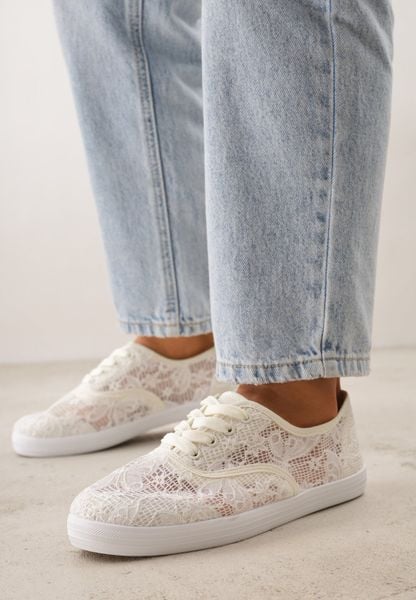 Beżowe Tenisówki Ozdobione Koronką Tarinela