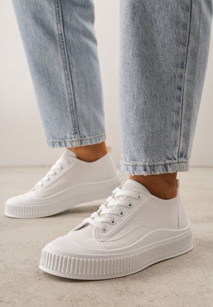 Białe Basicowe Trampki z Podeszwą ze Żłobieniami Laurinatea