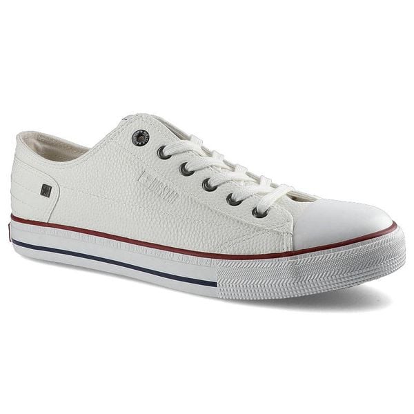 Trampki męskie Big Star, sznurowane z syntetyczną cholewką wzmocnionym noskiem metalowymi oczkami oraz gumową podeszwą, białe, II174001