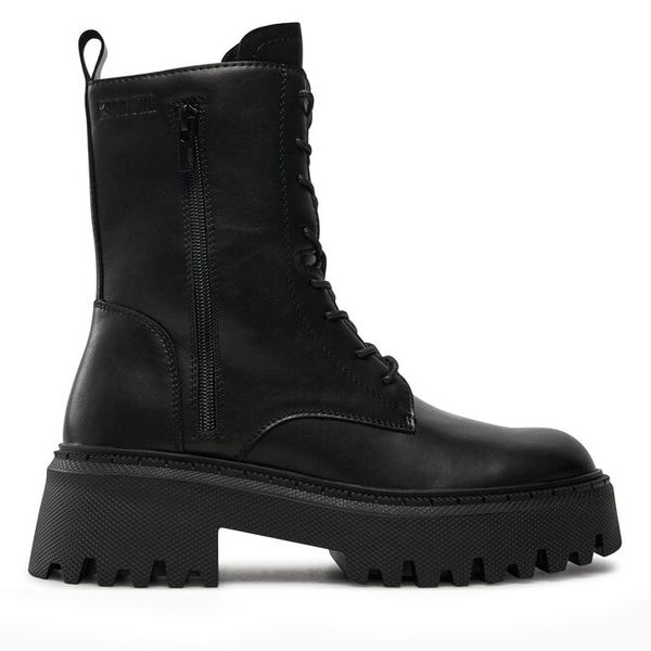 Czarne Botki Trapery Vices na Grubej Tłoczonej Podeszwie z Przeszyciami Amarrise