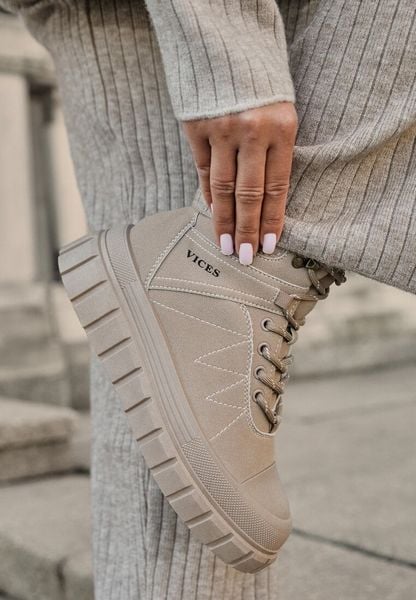 Ciemnobeżowe Botki Trapery Vices na Grubej Tłoczonej Podeszwie z Przeszyciami Amarrise