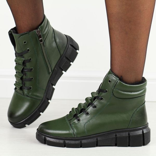 Khaki skórzane botki damskie na traperze T.Sokolski Z25-250