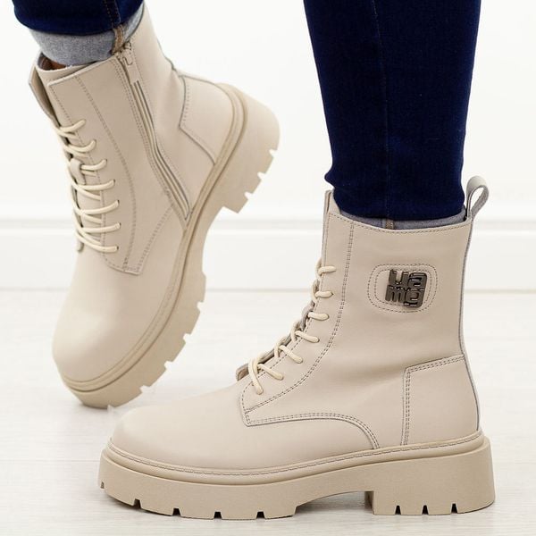 Beżowe skórzane botki damskie na traperze Cambell 71300