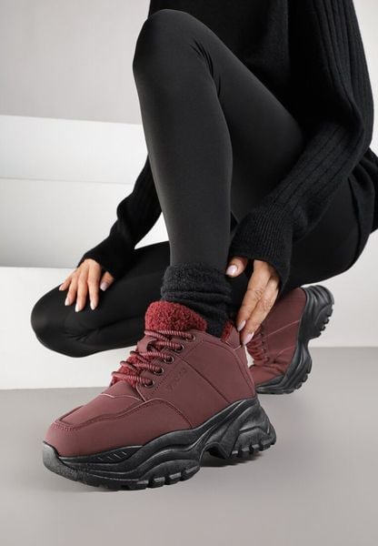 Bordowe Trapery Sneakersy Vices na Platformie z Tłoczeniem Nirrise