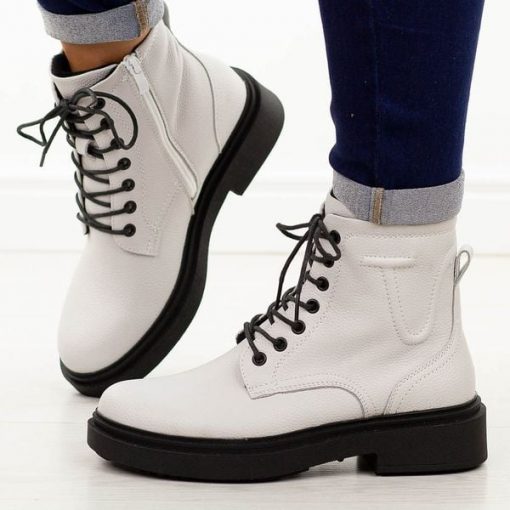 Jasnoszare Sznurowane Traperki na Grubej Podeszwie Ocieplane Futerkiem Zinirae
