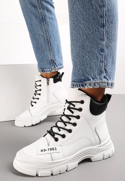 Białe Wiązane Traperki na Grubej Podeszwie Mibraces