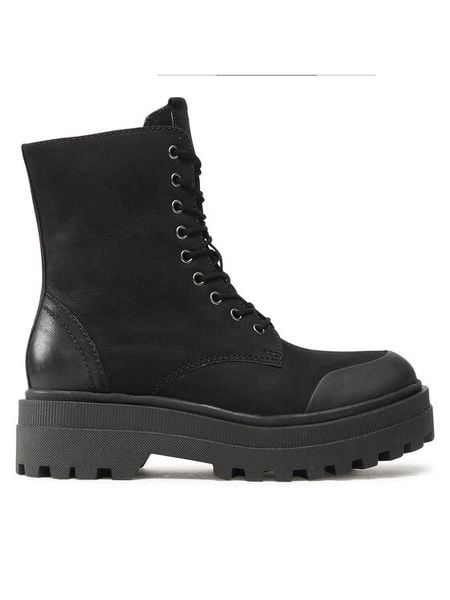 Czarne Traperki ze Sznurowaniem i Grubą Podeszwą z Nubuku Syntetycznego Ariellta