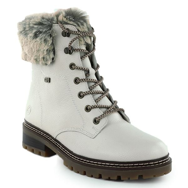 Skórzane botki damskie traperki z futerkiem bezowe Remonte Rieker D0B74-80