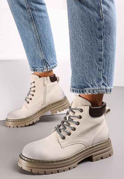Beżowe Traperki z Lekkim Ociepleniem Malak