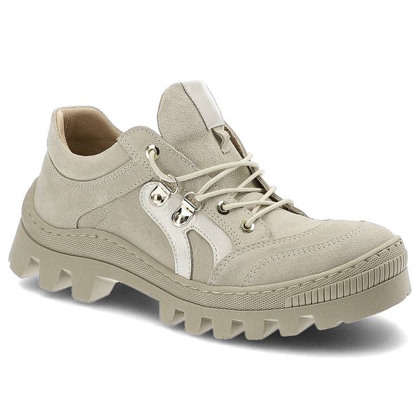 Półbuty damskie Kampa, zamszowa cholewka o miękkiej strukturze sportowe sznurowanie z metalowymi oczkami, beżowe, N544