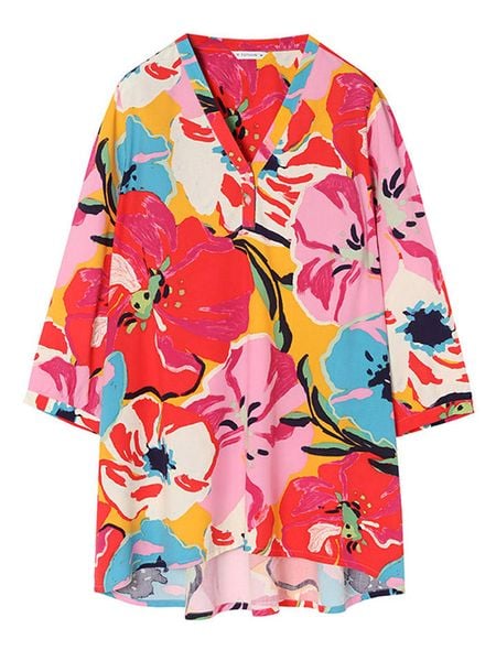 – czysta wiskoza- dekolt: V- zapięcie: skrócona listwa guzikowa- długość rękawa: 7/8- krój: luźny- wzór: na całości