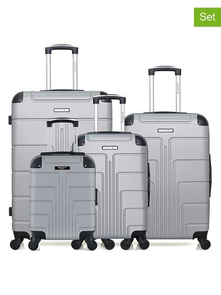 W zestawie:- 4 walizki w różnych rozmiarach- materiał: ABS- uchwyt: wyciągany- zapięcie: suwak- pasy do przypinania zawartości: tak- uchwyty: 2- kółka: 4, 360° kąt obracania- rodzaj kłódki: szyfrowa- kieszenie wewnętrzne: różne- najmniejsza walizka nadaje się jako bagaż podręczny