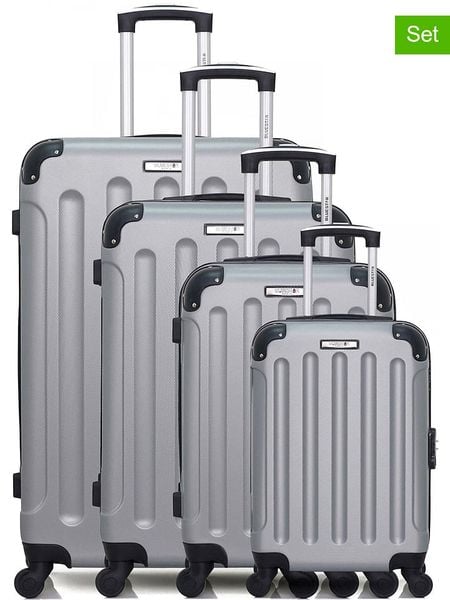 W zestawie:- 4 walizki w różnych rozmiarach- materiał: ABS- uchwyt: wyciągany- zapięcie: suwak- pasy do przypinania zawartości: tak- uchwyty: 2- kółka: 4, 360° kąt obracania- rodzaj kłódki: szyfrowa- kieszenie wewnętrzne: różne- najmniejsza walizka nadaje się jako bagaż podręczny