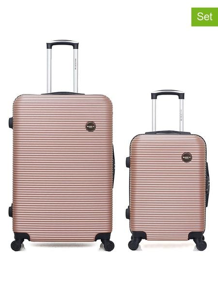 W zestawie:- 2 walizki w różnych rozmiarach- materiał: ABS- uchwyt: wyciągany- zapięcie: suwak- pasy do przypinania zawartości: tak- uchwyty: 2- kółka: 4, 360° kąt obracania- rodzaj kłódki: szyfrowa- kieszenie wewnętrzne: różne- najmniejsza walizka nadaje się jako bagaż podręczny
