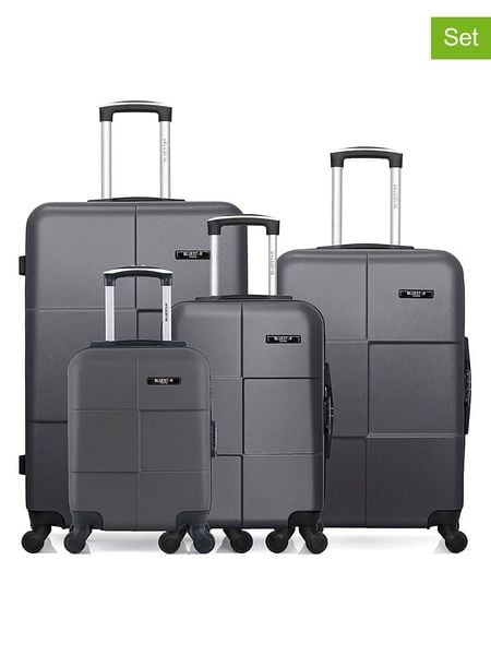 W zestawie:- 4 walizki w różnych rozmiarach- materiał: ABS- uchwyt: wyciągany- zapięcie: suwak- pasy do przypinania zawartości: tak- uchwyty: 2- kółka: 4, 360° kąt obracania- rodzaj kłódki: szyfrowa- kieszenie wewnętrzne: różne- najmniejsza walizka nadaje się jako bagaż podręczny