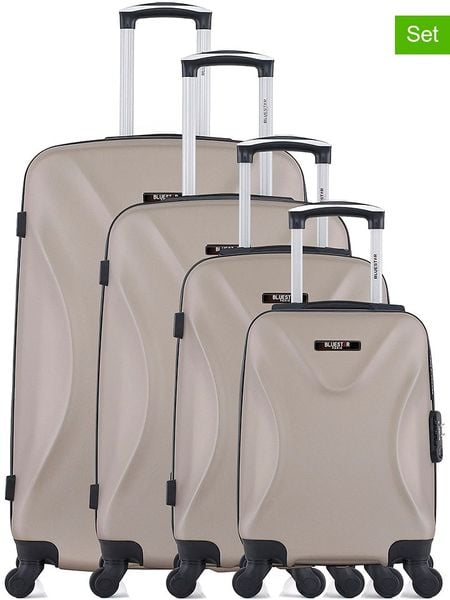 W zestawie:- 4 walizki w różnych rozmiarach- materiał: ABS- uchwyt: wyciągany- zapięcie: suwak- pasy do przypinania zawartości: tak- uchwyty: 2- kółka: 4, 360° kąt obracania- rodzaj kłódki: szyfrowa- kieszenie wewnętrzne: różne- najmniejsza walizka nadaje się jako bagaż podręczny