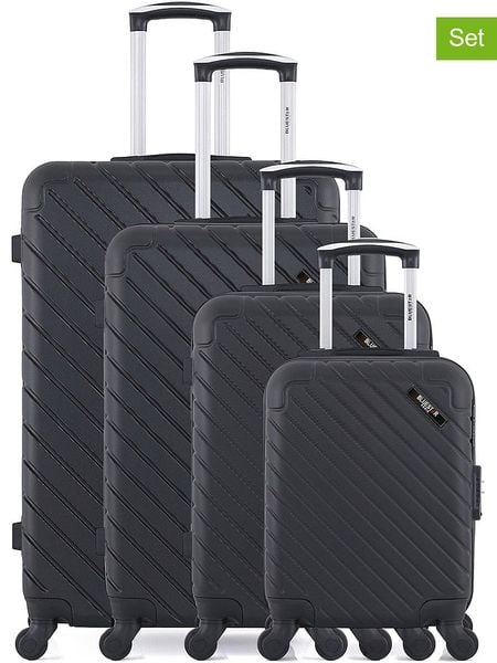 W zestawie:- 4 walizki w różnych rozmiarach- materiał: ABS- uchwyt: wyciągany- zapięcie: suwak- pasy do przypinania zawartości: tak- uchwyty: 2- kółka: 4, 360° kąt obracania- rodzaj kłódki: szyfrowa- kieszenie wewnętrzne: różne- najmniejsza walizka nadaje się jako bagaż podręczny