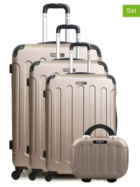W zestawie:- 3 walizki w różnych rozmiarach- 1 kosmetyczkaWalizka:- materiał: tworzywo sztuczne- uchwyt: wyciągany- rodzaj zapięcia: suwak- pasy do przypinania zawartości: tak- uchwyty: 2- kółka: 4, 360° kąt obracania- rodzaj kłódki: szyfrowa- kieszenie wewnętrzne: różne- najmniejsza walizka nadaje się jako bagaż podręcznyKosmetyczka:- materiał: tworzywo sztuczne- rodzaj zapięcia: suwak- uchwyty: 1