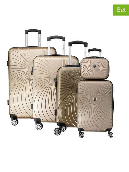 W zestawie:- 4 walizki w różnych rozmiarach- 1 kosmetyczkaWalizki:- materiał: ABS- uchwyty: 2- uchwyt: płynnie regulowany, teleskopowy- zapięcie: suwak- rodzaj kłódki: szyfrowa- pasy do przypinania zawartości: tak- kółka: 4, 360° kąt obracania- najmniejsza walizka nadaje się jako bagaż podręcznyKosmetyczka:- materiał: ABS- uchwyty: 1- zapięcie: suwak- detale: nóżki z tworzywa sztucznego