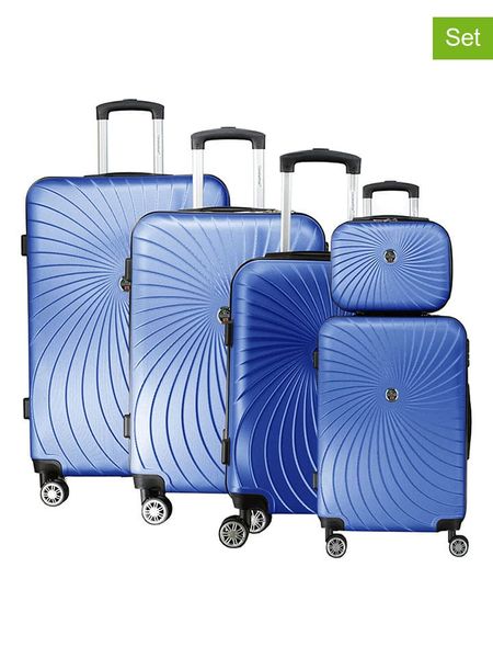 W zestawie:- 4 walizki w różnych rozmiarach- 1 kosmetyczkaWalizki:- materiał: ABS- uchwyty: 2- uchwyt: płynnie regulowany, teleskopowy- zapięcie: suwak- rodzaj kłódki: szyfrowa- pasy do przypinania zawartości: tak- kółka: 4, 360° kąt obracania- najmniejsza walizka nadaje się jako bagaż podręcznyKosmetyczka:- materiał: ABS- uchwyty: 1- zapięcie: suwak- detale: nóżki z tworzywa sztucznego