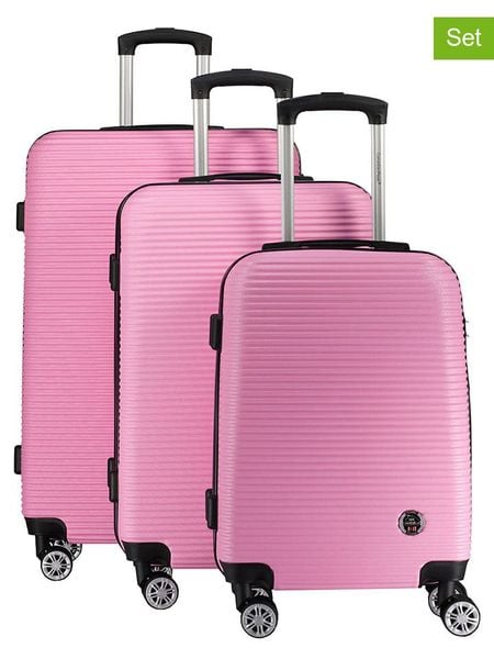W zestawie:- 3 walizki w różnych rozmiarachWalizki:- materiał: ABS- uchwyty: 2- uchwyt: płynnie regulowany, teleskopowy- zapięcie: suwak- rodzaj kłódki: szyfrowa- pasy do przypinania zawartości: tak- kółka: 4, 360° kąt obracania