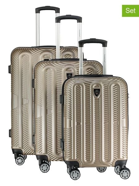 W zestawie:- 3 walizki w różnych rozmiarachWalizka:- materiał: ABS- uchwyty: 2- uchwyt: płynnie regulowany, teleskopowy – zapięcie: suwak- rodzaj kłódki: szyfrowa- pasy do przypinania zawartości: tak – kółka: 4, 360° kąt obracania