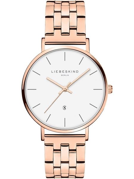 – koperta: stal szlachetna z powłoką IP-roségold- szkiełko: szkiełko mineralne- bransoleta: stal szlachetna z powłoką IP-roségold- zapięcie: składane- mechanizm: kwarcowy- tarcza: analogowa- funkcje: godziny, minuty, sekundy- kalendarz: data- bateria w przesyłce: tak- wodoszczelny do 3 barów (odporny na zachlapania przy myciu rąk lub podczas lekkiego deszczu)